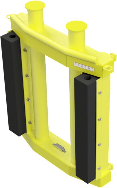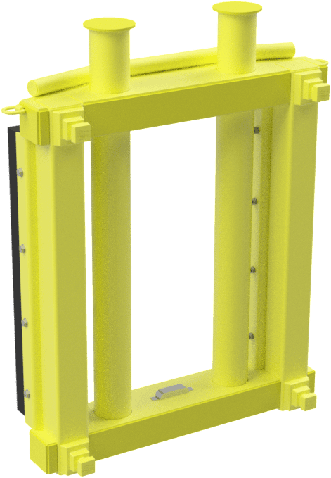 - Rubber fenders for energy absorption. Secured to the fabricated frame using 1” stainless steel fasteners.